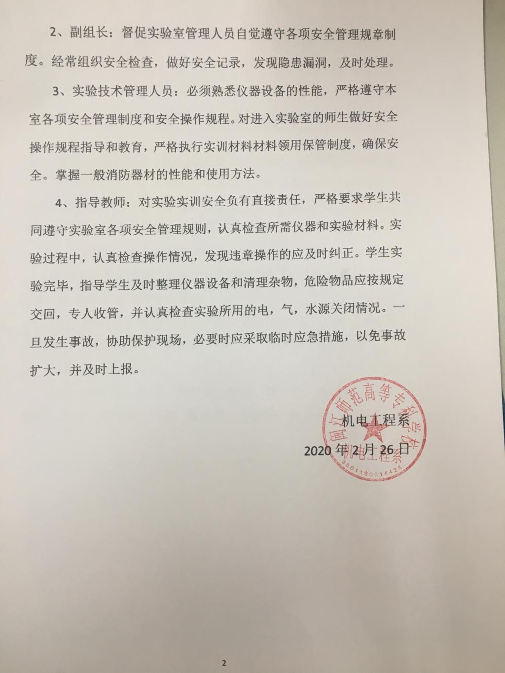 为进一步提高我系实验室安全管理水平,加强全院(系)师生进入实验室的安全意识和责任感,预防和减少(防范发生)安全事故,确保教学、科研有序进行,经研究决定,成立机电工程系实验室安全工作领导小组,名单及工作职责如下: