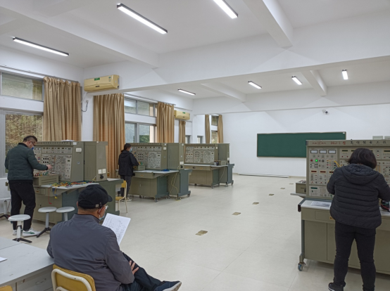 考核工作面向入职满一年、50周岁以下教师,结合专业特点设计以课堂教学技能考核为主、突出专业实操基本功的考核项目,在5号楼实训室、17号楼实训车间设置了六个考核场地,全面考核评价教师理论素质和操作能力。经过前期充分准备、现场项目抽签,11位中青年教师按专业分别参加第一、二、三和第五考场的考核,考评等级都在良好及以上。