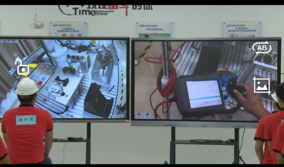 5月5日,在5号楼智能制造1+X工业机器人技能考核实训室,工业机器人专业教师利用远程在线方式,对外展示工业机器人操作与编程技术,本次活动主要利用互联网技术手段,通过远程投屏技术进行远程线上展示工业机器人操作关键技能。