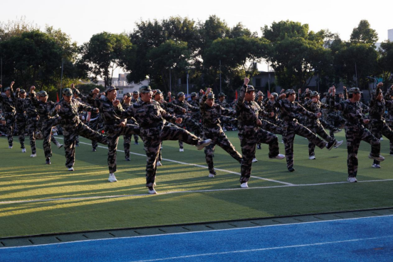 伴随着清晨的第一缕阳光,校园内响起了整齐划一的口号声,这是新生军训在青春校园里火热地进行中。