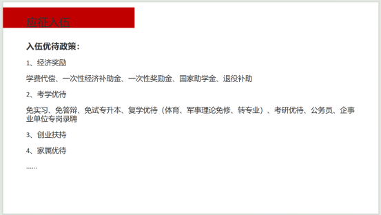 本次活动聚焦专升本、参军入伍政策宣讲,毕业班辅导员王淑霞详细分析了近年专升本考试形势,分享了专升本复习方法及学长的备考技巧,解答了同学们对专升本存在的诸多疑虑,帮助毕业生明确了努力的方向和目标;详细介绍了参军入伍的时间节点、注意事项、报名方法以及优惠政策等相关内容,引导毕业生积极响应号召,挺膺担当,将青春理想自觉融入到国防建设的生动实践中。