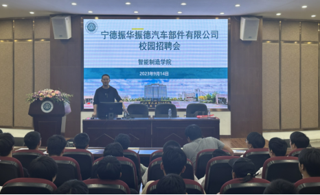 9月13日、14日,智能制造学院邀请宁德时代新能源科技股份有限公司、宁德振华振德汽车部件有限公司来校开展专场招聘宣讲活动。2024届汽车制造与试验技术、新能源汽车技术专业全体毕业生参加招聘宣讲活动,活动由汽车制造教研室副主任杨康主持。