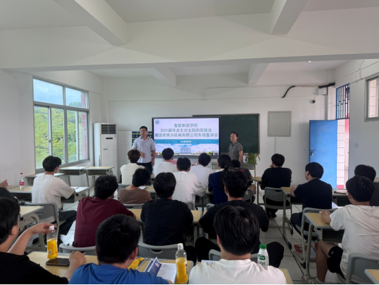为进一步做好2025届毕业生实习就业工作,促进毕业生充分就业,9月9日上午,智能制造学院在17号楼301教室举办莆田市荣兴机械有限公司专场招聘宣讲会。智能制造学院机电设备教研室主任陈攀、辅导员张焜、毕业班班主任林佳凯参加此次招聘宣讲会。