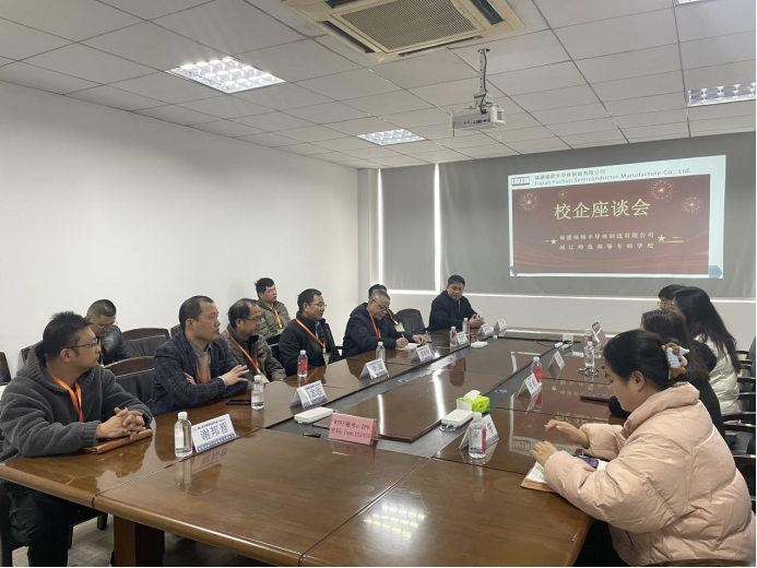 在与福建福顺半导体制造有限公司负责人座谈时,企业方介绍了公司的发展历程、产品制程、用工需求和成长规划,双方就人才培养、实习生表现情况和合作方向作了深入研讨。谢敏峰副书记表示,要加强与企业的互动交流,增进需求了解;要加强毕业生的就业导向教育,与企业双向奔赴,提高毕业生的就业价值体验。