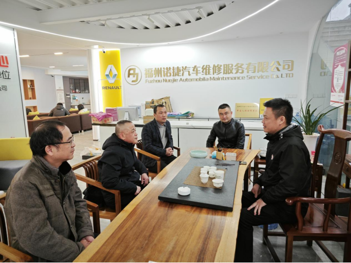 在福州诺捷汽车维修服务有限公司,大家参观了维修车间,并进行了实习就业拓岗座谈,双方就学生实习实训、就业推荐、校企合作等方面作了交流。