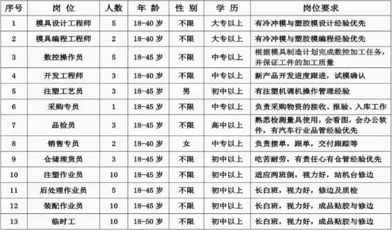 招聘岗位及要求: