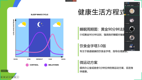 良好的身体状态是高效工作的基础,为了提醒同学们在繁忙的工作中保持身体健康,辅导员在活动中介绍了“黄金90分钟睡眠法则”,强调规律作息对健康的重要性;同时,展示了“饮食金字塔3.0版”,指导学生如何通过合理膳食保持肠道健康。