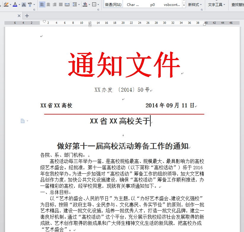第一:通知文件、单位名称和编写时间使用的是两端对齐。前面说过WORD的宽度和编辑器的宽度以及网页的宽度都不是一致的,所以在WORD中“看上去居中”的信息导入编辑器、发布到网页就并不一定居中了。
