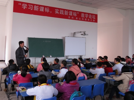 最后,由福清市滨江小学校长陈明太老师为我们带来一堂同样精彩的五年级课文《将相和》。课堂上由师生配合模拟出蔺相如捧壁欲摔的场面,让人印象尤为深刻。