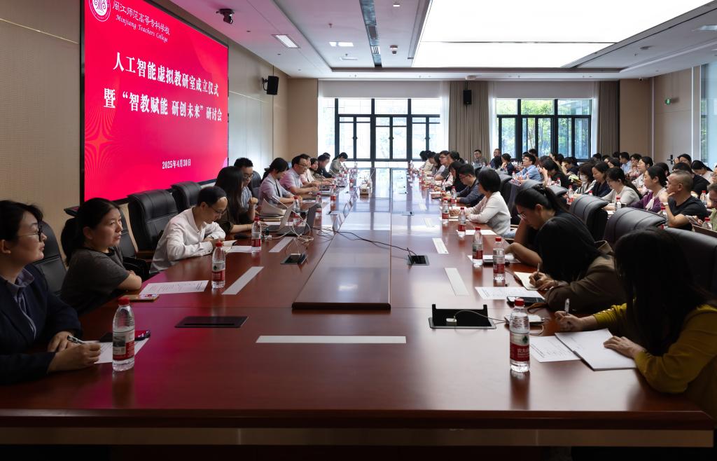 4月30日下午,大赢家体育app下载人工智能虚拟教研室成立仪式暨“智教赋能 研创未来”研讨会在校图书馆一层会议室举行。副校长陈强、教务处处长、各学院院长及分管院长、教研室主任,以及人工智能虚拟教研室全体成员参加活动。活动由葛思华主持。