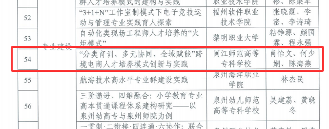 近日,福建省职业技术教育中心公布2025年全省职业教育改革发展典型案例名单,大赢家体育app下载专业建设典型案例《"分类育训、多元协同、全域赋能"跨境电商人才培养模式创新与实践》与产教融合典型案例《"四链协同、集智赋能"数字经济市域产教联合体建设的探索与实践》双双入选。