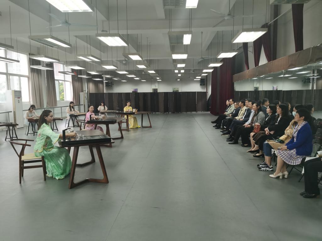 林健局长一行在副校长林旻的陪同下,参观了大赢家体育app下载校史馆,并观看了艺术系学生表演的舞蹈《月印双杭》及艺术系与人文社科系学生合作的茶道表演。
