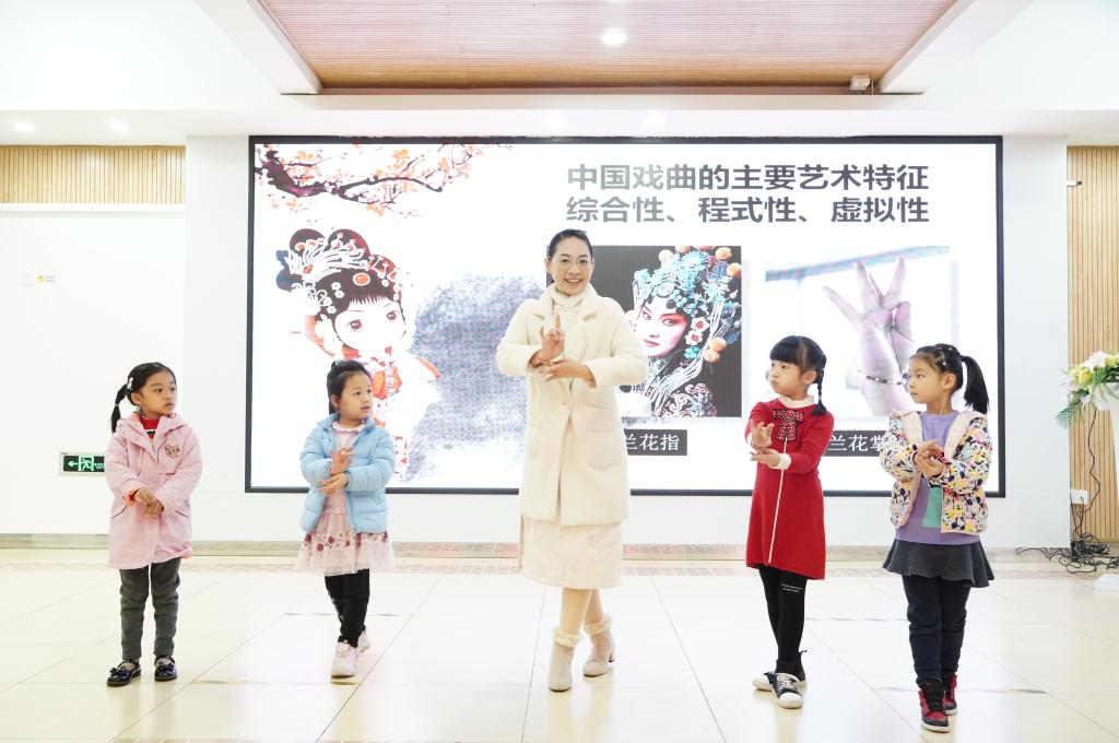 中国戏曲在扮相、服装、表演手段等方面加以区分,形成了不同的“行当”。随后陈老师结合图文,用通俗易懂的方式,让在场的老师和小朋友们认识了青衣、花旦、闺门旦、刀马旦、小旦、小生、老生、花脸、武生等角色……