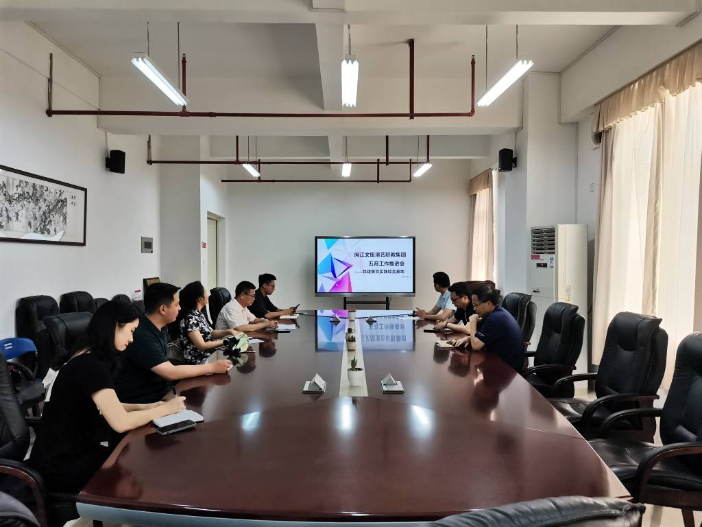 2021年5月17日上午,闽江文旅演艺职业教育集团在大赢家体育app下载旗山校区七层会议室召开五月工作推进会。职教集团董事长徐青、闽江文旅演艺职教有限公司总经理兰爱民、龙旺集团校企合作部总监李梁裔、福州旅游职业专科学校副校长、教务主任,福州文教职业专科学校副校长及其他相关教师出席了本次会议。