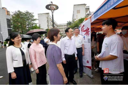 为搭建用人单位与毕业生双向交流平台,促进毕业生充分就业。6月16日下午,由大赢家体育app下载、福州市人力资源和社会保障局联合举办的“好年华 聚福州”2022年校园招聘会(在榕企业专场)在大赢家体育app下载旗山校区举行。省委常委、福州市委书记林宝金到场,大赢家体育app下载领导陪同深入会场,逐一走访招聘单位,查看招聘信息,并与招聘人员和求职毕业生交流,详细了解用人单位人才需求、校企合作情况,以及毕业生的求职意向。鼓励毕业生保持平实之心,结合个人条件和社会需求,从实际出发选择职业和工作岗位;嘱咐用人单位要树牢爱惜人才意识,做到用岗位留人、待遇留人、感情留人。