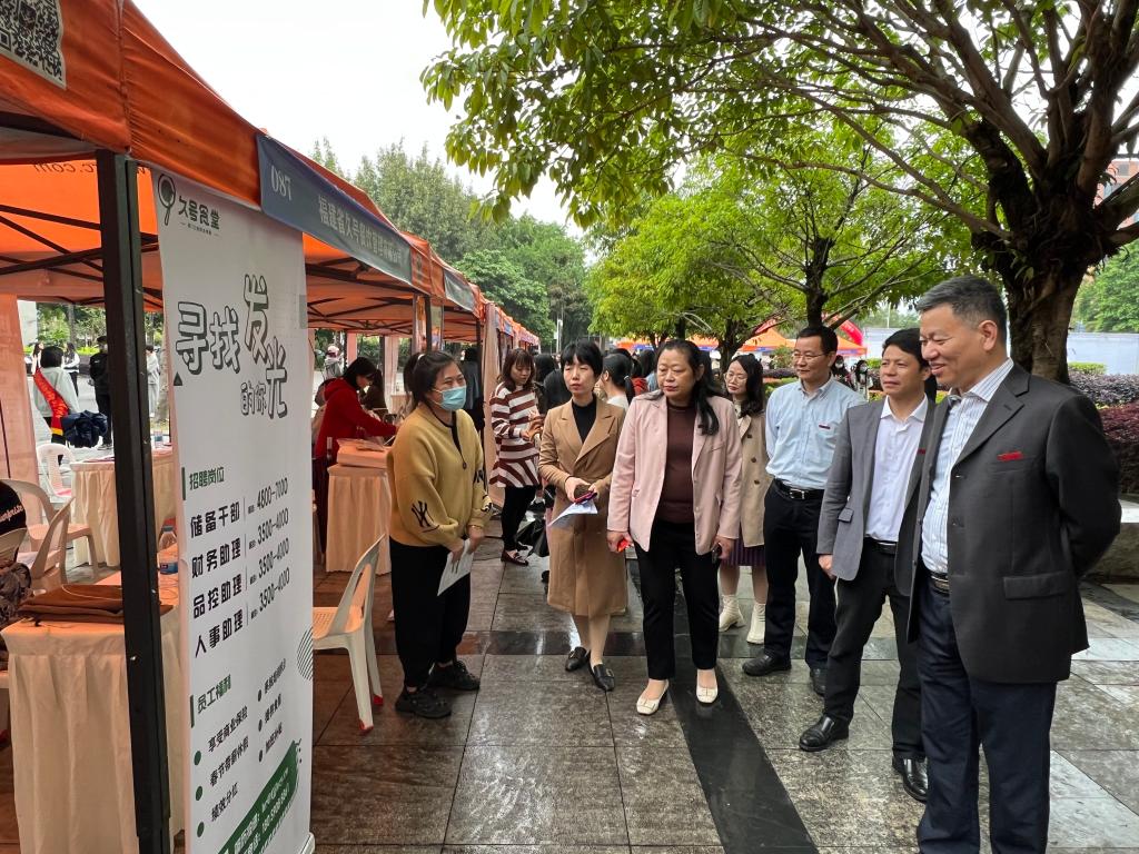 为深入学习贯彻党的二十大精神,全面落实党中央、国务院关于高校毕业生就业创业工作决策部署和省委、省政府工作要求,确保新学期就业工作开好局、起好步,大赢家体育app下载联合福州市人社局于2023年4月26日下午在旗山校区举办“好年华 聚福州”校园招聘会,到场企业120余家,涵盖教育培训、餐饮贸易、信息技术、制造生产四大类,提供岗位数约达4000个。校党委陈荣生书记、杨建义校长、林旻副书记、谢敏峰副校长莅临现场指导招聘会工作,学生处郭静静处长陪同。