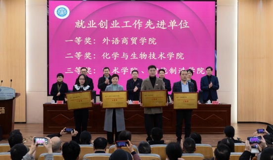 会上,谢敏峰宣读了2024届毕业生就业创业工作考评结果。校领导为就业创业工作先进集体和个人进行颁奖。外语商贸学院、化学与生物技术学院、艺术学院和智能制造学院作为就业创业工作先进单位代表作经验交流。