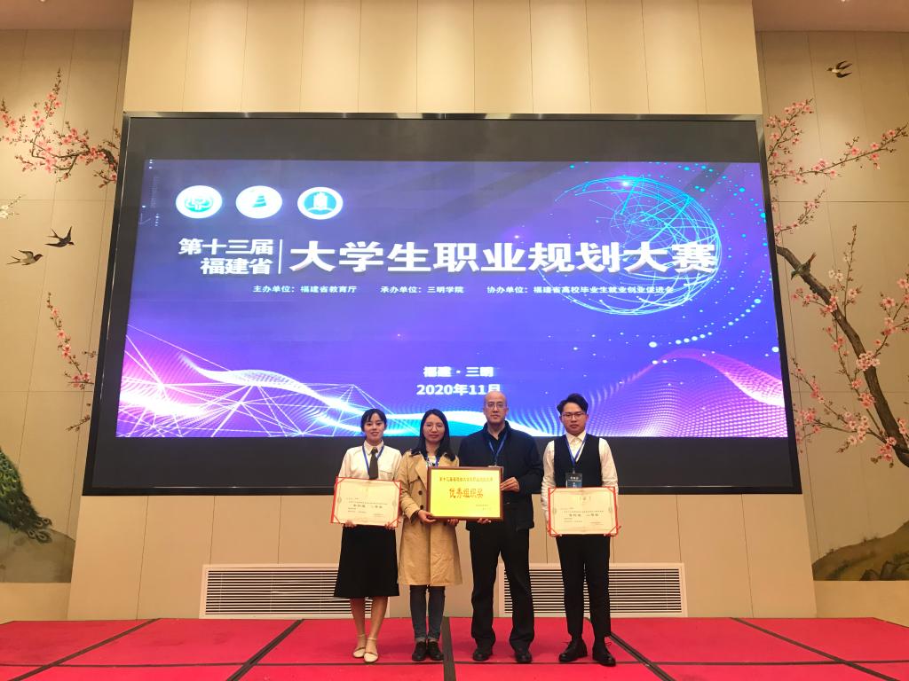 11月12日,由福建省教育厅主办、三明学院承办的第十三届福建省大学生职业规划大赛落下帷幕。在本届大赛中,大赢家体育app下载荣获优秀组织奖,初等教育系2018级小学教育(综合文科教育)专业学生林燕婷(参赛作品《执教乡村 筑梦育人》,指导老师:刘志杰)、计算机系2019级数字展示技术(VR方向)专业学生杨承凯(参赛作品《坚定文化自信,传递新媒体热度》,指导老师:董秋锋)同获专科组比赛二等奖。