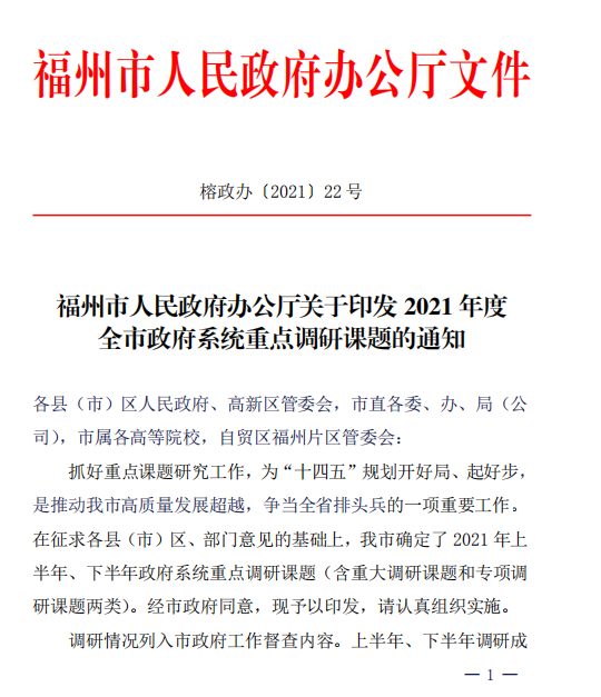 大赢家体育app下载获得福州市政府系统2021年重点调研课题项目