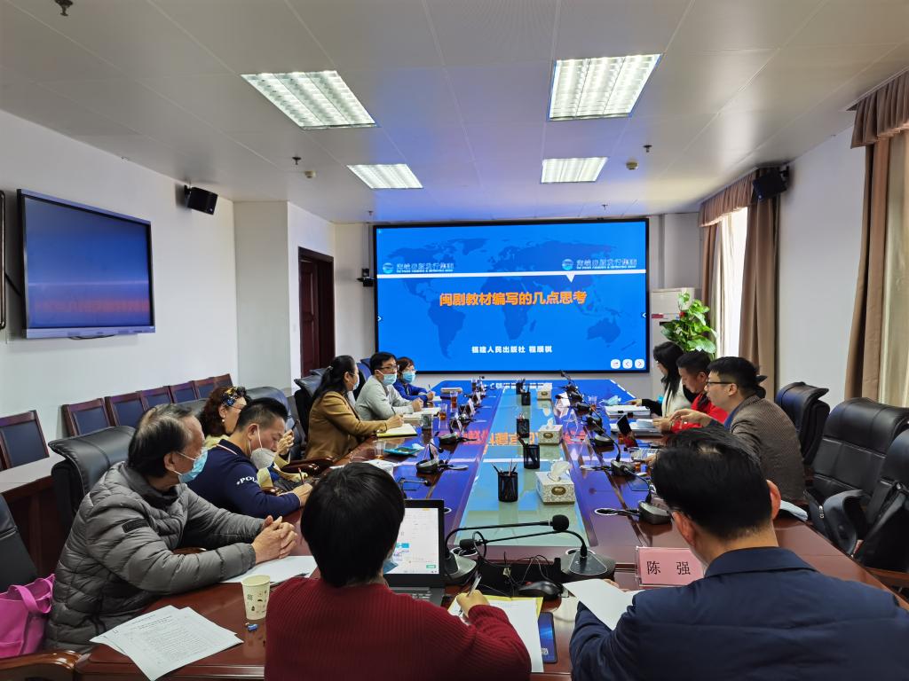 会议由科研处陈强处长主持,闽剧教材作者、原福州市艺术学校校长陈乃春首先对教材进行了简要的介绍:本次系列闽剧教材不仅对闽剧传统经典的剧目、音频、乐谱进行搜集,在呈现方式上也采用二维码、图文并茂等信息化的传播方式。