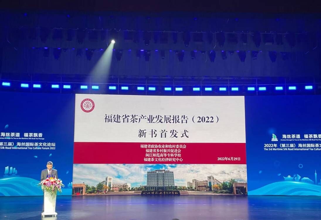 2022年6月29日,第三届届海丝国际茶文化论坛——《中国茶产业发展研究报告2021(茶业蓝皮书)》《福建省茶产业发展报告(2022)》《茶坐标——标杆千年福建茶》首发式在福鼎举行。本届论坛以“海丝茶道 福茶飘香”为主题,旨在喜迎党的二十大,深入贯彻习近平总书记来闽考察重要讲话精神,贯彻落实福建省第十一次党代会精神,统筹做好“茶文化、茶产业、茶科技”这篇大文章,将“福”文化和“福茶”推向世界,促进中外茶文化交流互鉴,助力“一带一路”建设和乡村振兴。活动采用线上与线下相结合、国内与国外互动、中英双语同步线上直播的形式举行。福建日报全媒体和东南网媒体矩阵进行行全球视频直播。