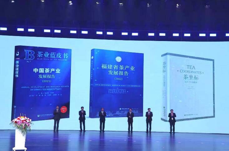 福建茶科所郑迺辉研究员代表茶业蓝皮书编委会发布《中国茶产业发展研究报告2021(茶业蓝皮书)》,大赢家体育app下载党委书记陈荣生发布《福建省茶产业发展报告(2022)》,金穑发布《茶坐标——标杆千年福建茶》新书。