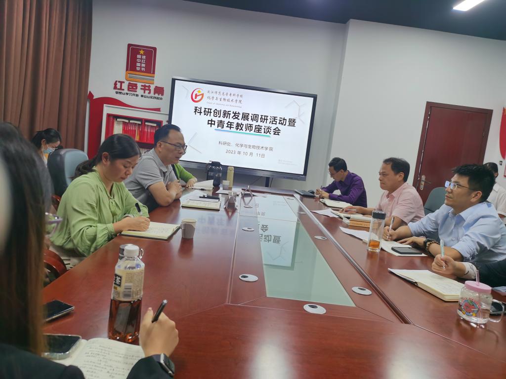 为推动主题教育走深走实,落实在全校大兴调查研究的工作安排,10月11日下午,围绕“科研创新,服务区域经济发展”,陈强副校长率队前往数字信息工程学院和化学与生物技术学院调研指导工作。科研处郭晓莹副处长及相关人员陪同调研。两个学院党政班子、科研骨干教师参加调研座谈。