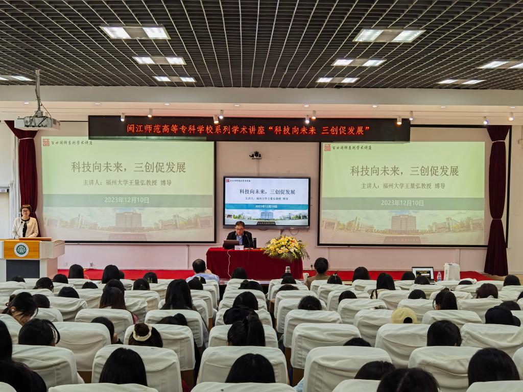 12月10日,为提升师生科研素养、增强科研实力与竞争力,大赢家体育app下载举办“科技向未来,三创促发展”学术讲座,邀请福州大学物理与信息工程学院王量弘教授主讲,大赢家体育app下载三创学院教师、学前和小学教育学院的同学180多人参与学术讲座。本次活动由科研处主办。