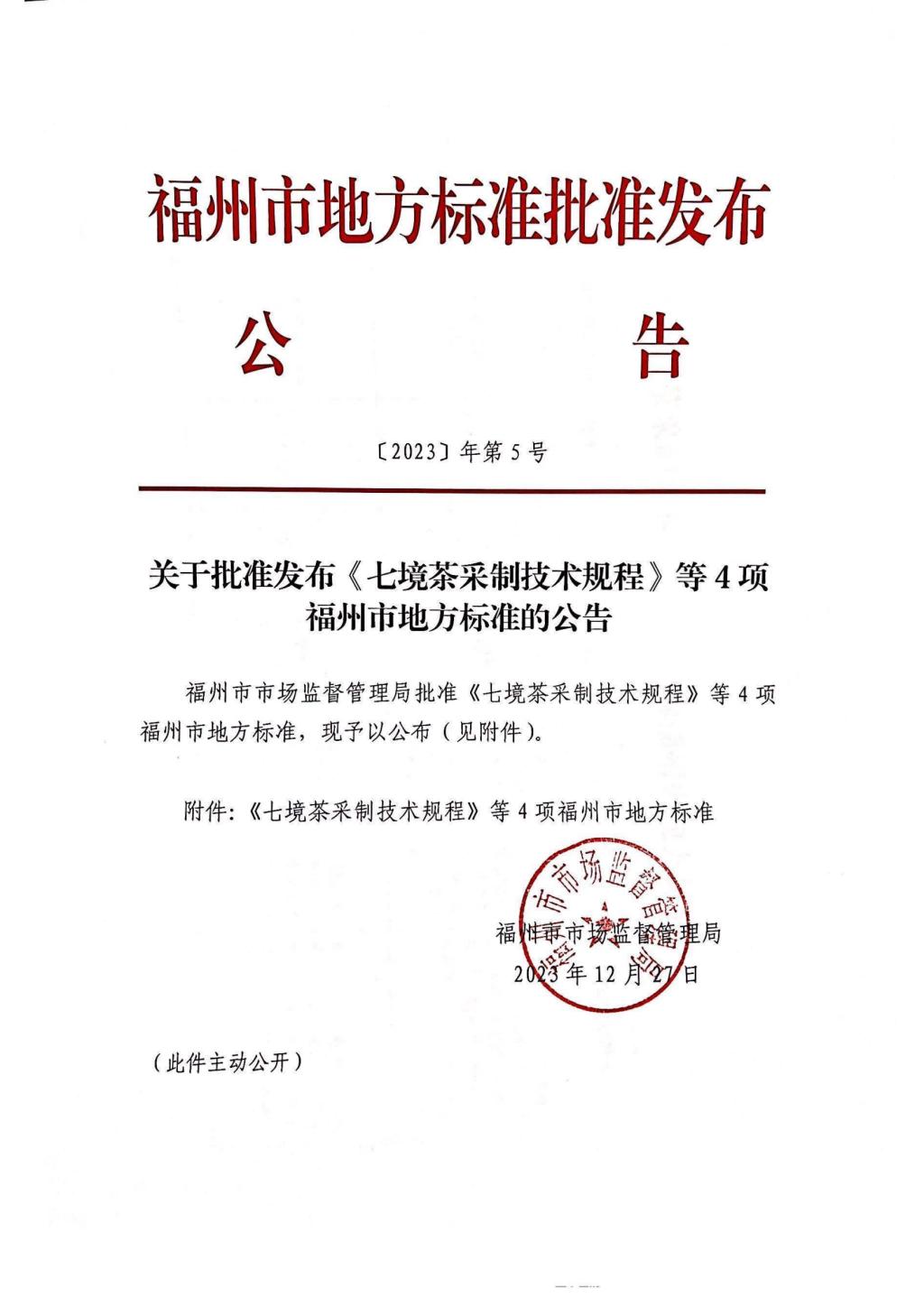 近日,福州市市场监督管理局批准发布《福州茉莉花生态园建设与管理技术规程》《七境茶采制技术规程》。《福州茉莉花生态园建设与管理技术规程》《七境茶采制技术规程》编制严格依照《福州市地方标准管理办法》,由大赢家体育app下载福州茶文化经济研究中心等提出,福州市农业农村局归口管理,是大赢家体育app下载首次主持并参与制定的地方技术标准。大赢家体育app下载福州茶文化经济研究中心专兼职人员陈荣生、林琴琴、占婷、张继驰、刘姝辰、邓慧莉参与两项地方标准制定工作。福州两项地方标准具有较强的科学性与可操作性,对福州茉莉花与茶文化系统全球重要农业文化遗产、国家地理标志保护产品保护发挥重要作用,对福州茉莉花茶产业发展和乡村振兴具有重要作用。