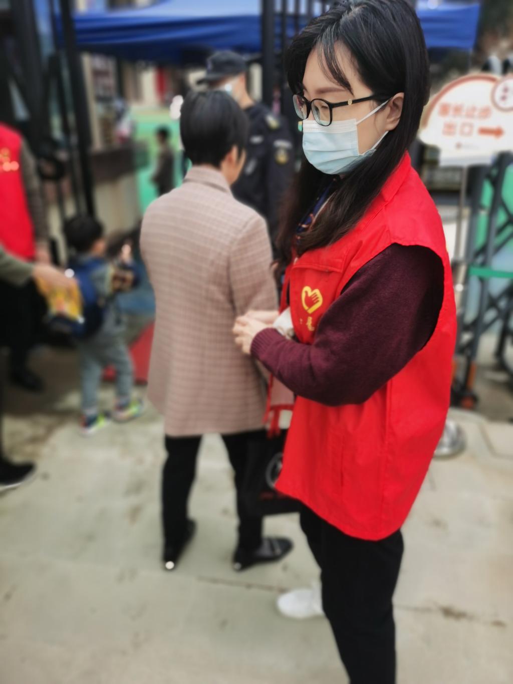 林志香在福州市市属幼儿园校门口防疫宣传与交通疏导志愿服务