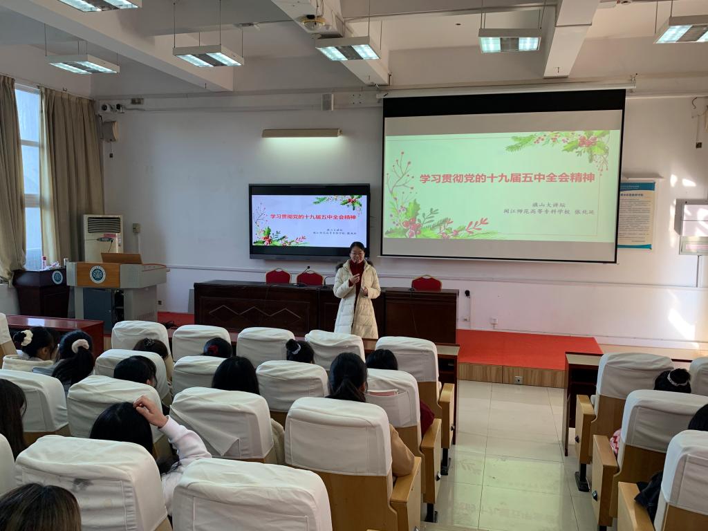 12月30日下午,马克思主义学院“旗山大讲坛”活动在旗山校区2016教室举行,张兆延老师做了题为“深入学习领会党的十九届五中全会精神”的主旨演讲。2020级各系学生代表、习近平新时代中国特色社会主义思想读书社社员参加了本次活动。