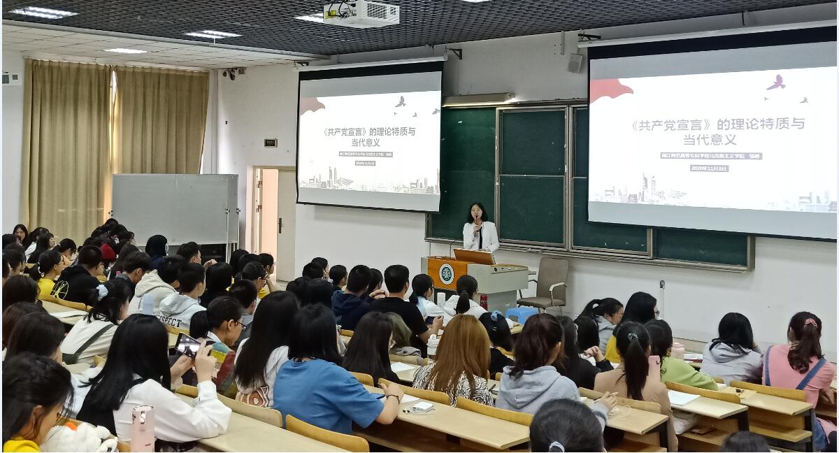 2020年11月4日下午,马克思主义学院于旗山校区1018教室举办了以《<共产党宣言>的理论特质与当代意义》为主题的旗山大讲坛。本次讲座由马院邹萌老师主讲,初等教育系部分学生、读书社学生代表共200多人参加讲座。