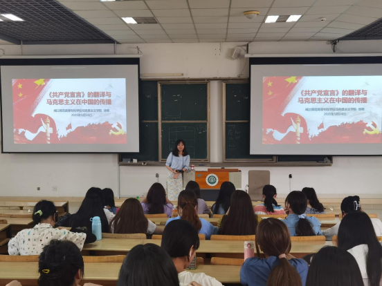 5月14日,马克思主义学院旗山大讲坛在旗山校区开讲,邹萌老师以“《共产党宣言》的翻译与马克思主义在中国的传播”为主题为学前系的学生做主题讲座。