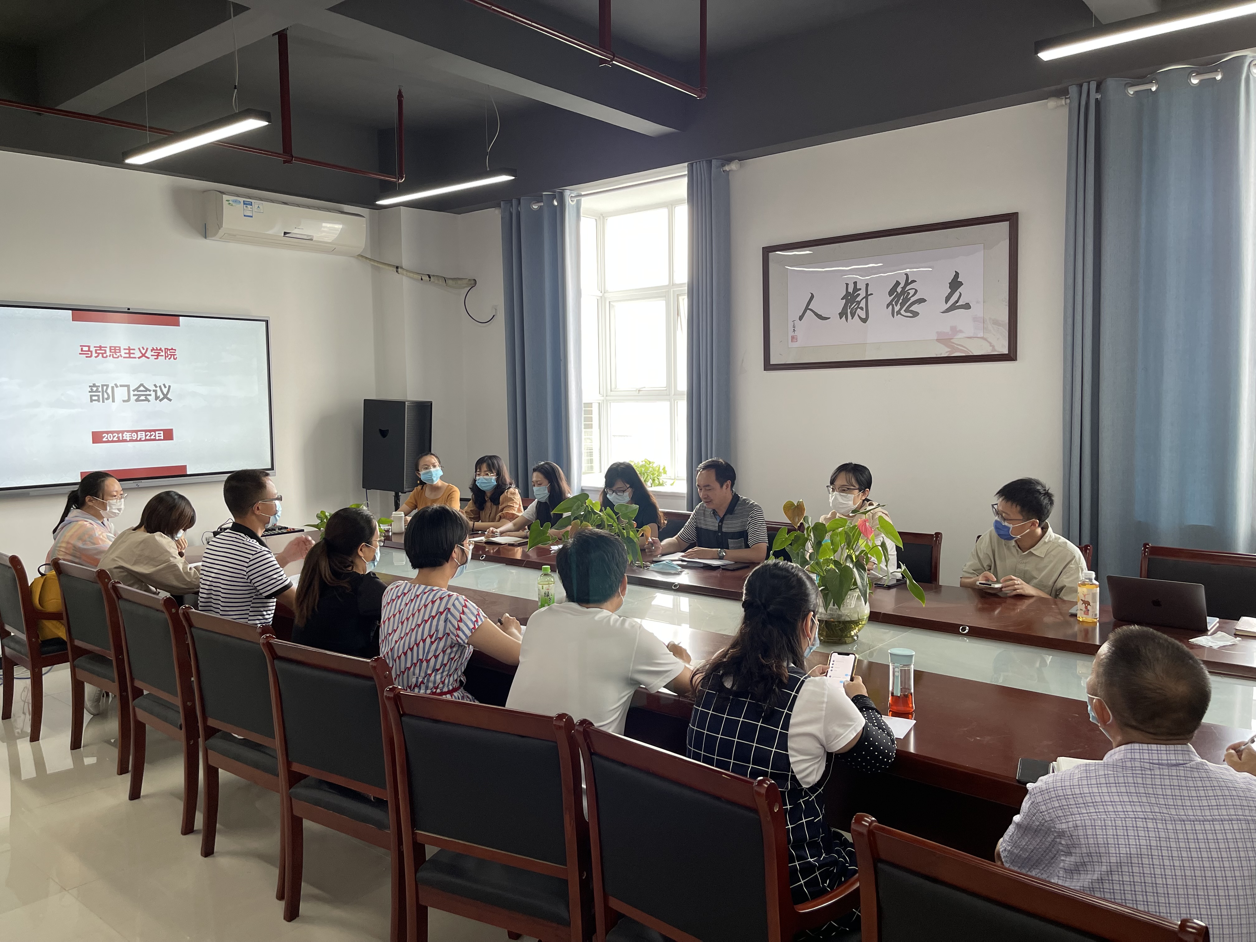9月22日下午,马克思主义学院在旗山校区党建活动中心召开部门工作暨9月份理论学习会议,会议由院长洪书源主持,学院全体教师参加会议。