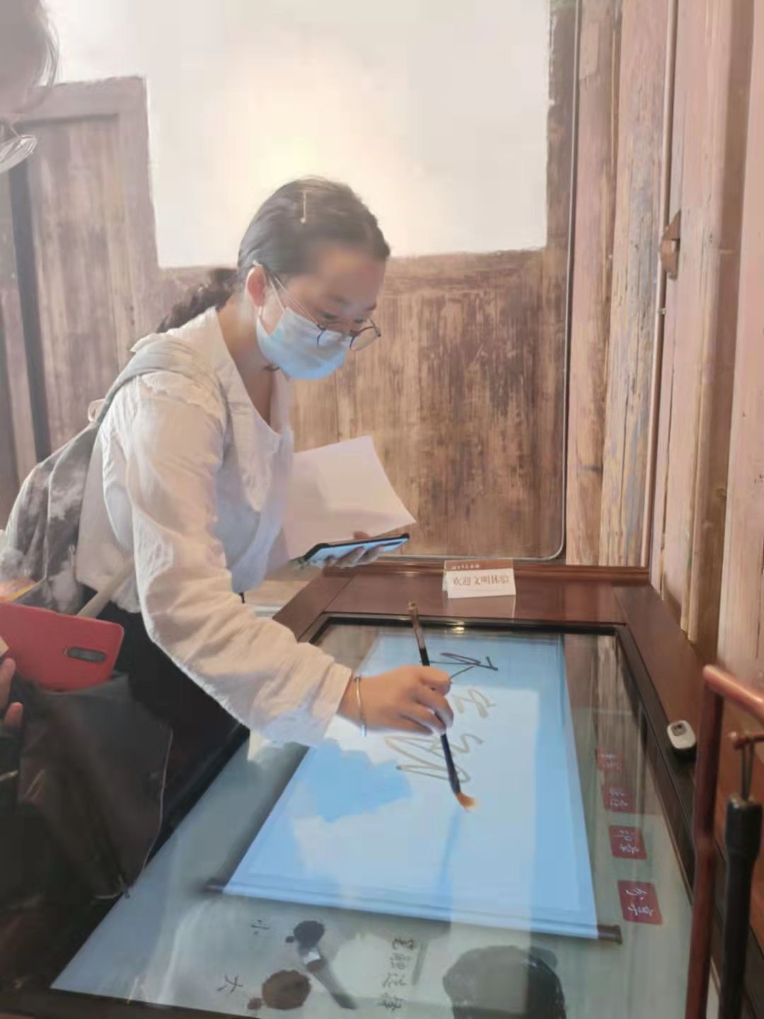 学生进行现场书法体验