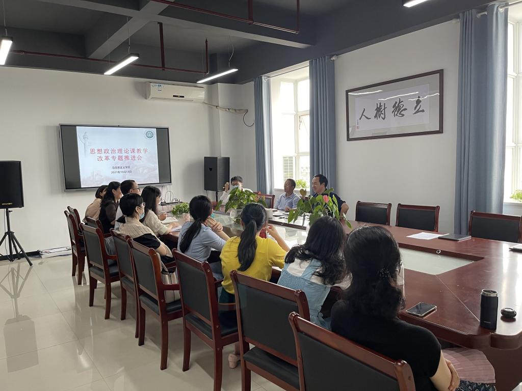 10月14日下午,马克思主义学院在旗山校区马克思主义学院党建活动中心召开思想政治理论课教学改革专题推进会,会议由院长洪书源主持,学院全体教师参加会议。