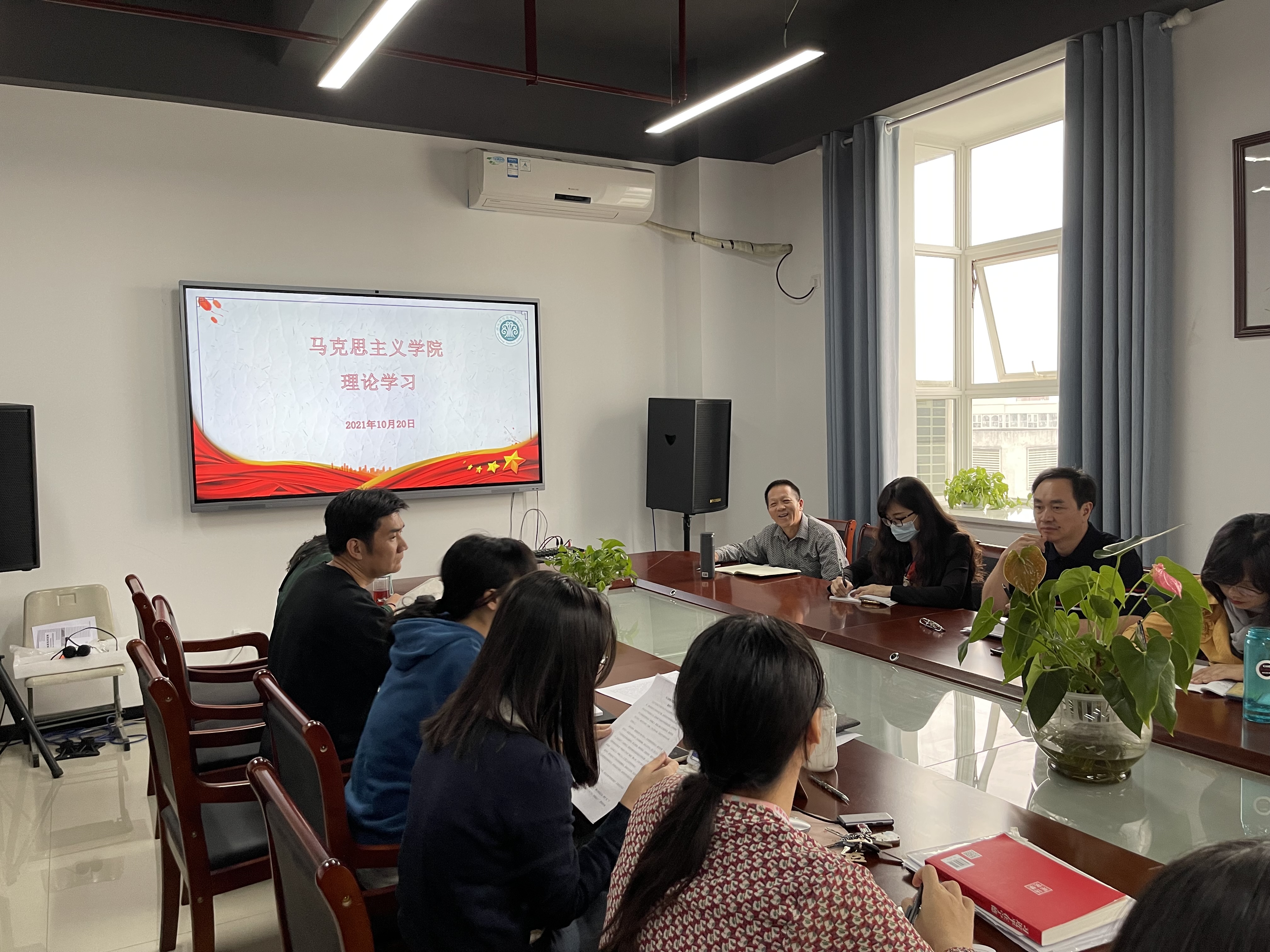10月20日下午,马克思主义学院在旗山校区院党建活动中心召开10月份理论学习会,会议由院长洪书源主持,学院全体教师参加会议。