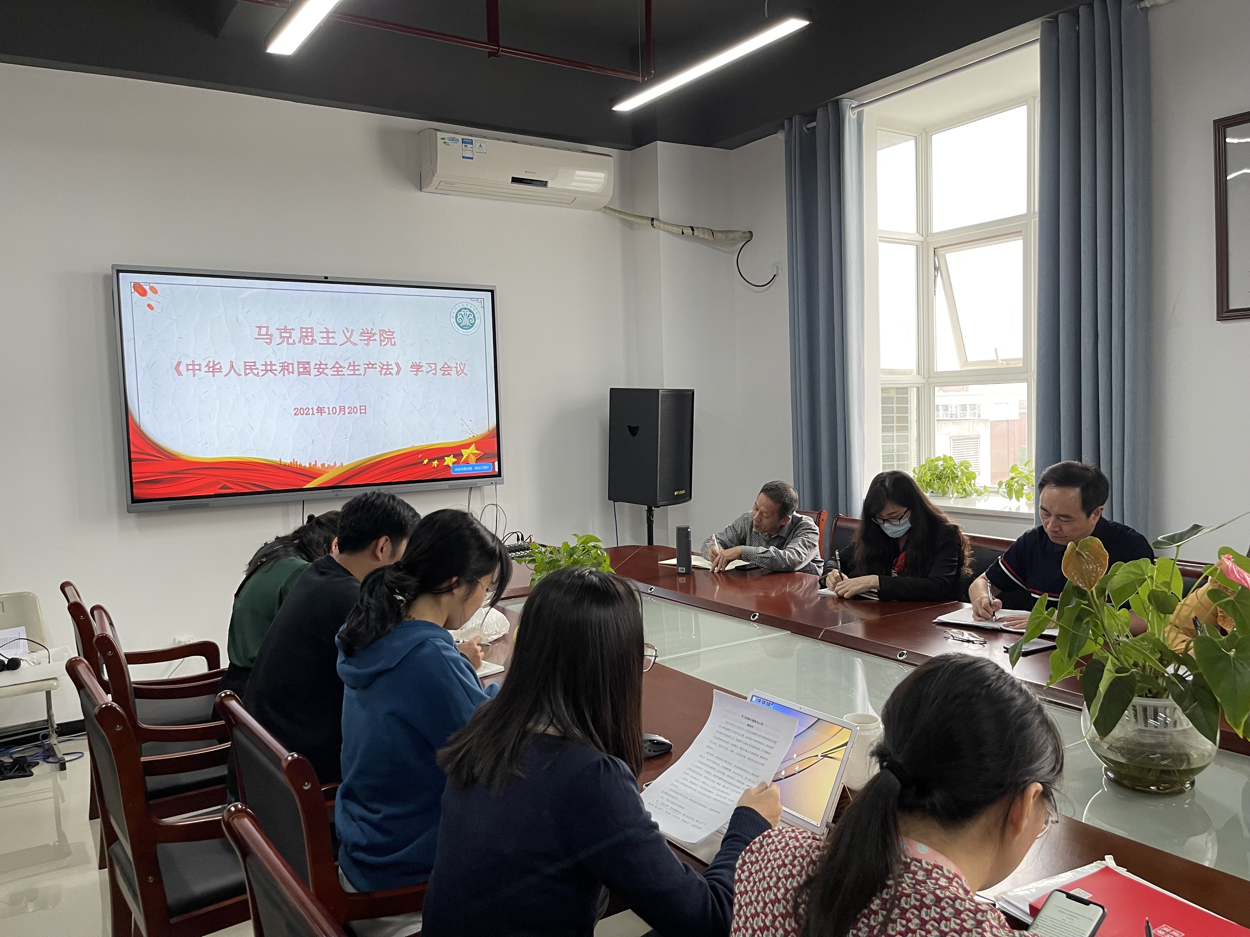 为贯彻落实学习新修订《中华人民共和国安全生产法》,切实增强教职工尊法、学法、守法、用法能力,10月20日下午,马克思主义学院全体教师在学院党建活动中心组织学习新修订《中华人民共和国安全生产法》。
