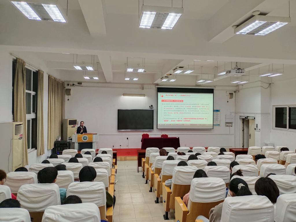 程兰芳老师从四个问题展开分析:通过这场战“疫”,我们看到了什么?战“疫”中我们在做什么?战“疫”向好带给我们何种启示?战“疫”凝聚了何种精神力量?庚子鼠年春节,疫情突如其来,是中国共产党和中国人民集体应对的一场“大考”。新冠肺炎疫情是新中国成立以来我国传播速度最快、感染范围最广、防控难度最大的重大突发公共卫生事件。接着,她强调党中央对疫情形势判断准确、各项工作部署及时、举措有力有效,充分彰显中国共产党领导和中国特色社会主义制度的显著优势。最后程兰芳老师强调,在这场同疫情的殊死较量中,中国人民以敢于斗争、敢于胜利的大无畏气概,铸就了生命至上、举国同心、舍生忘死、尊重科学、命运与共的伟大抗疫精神。