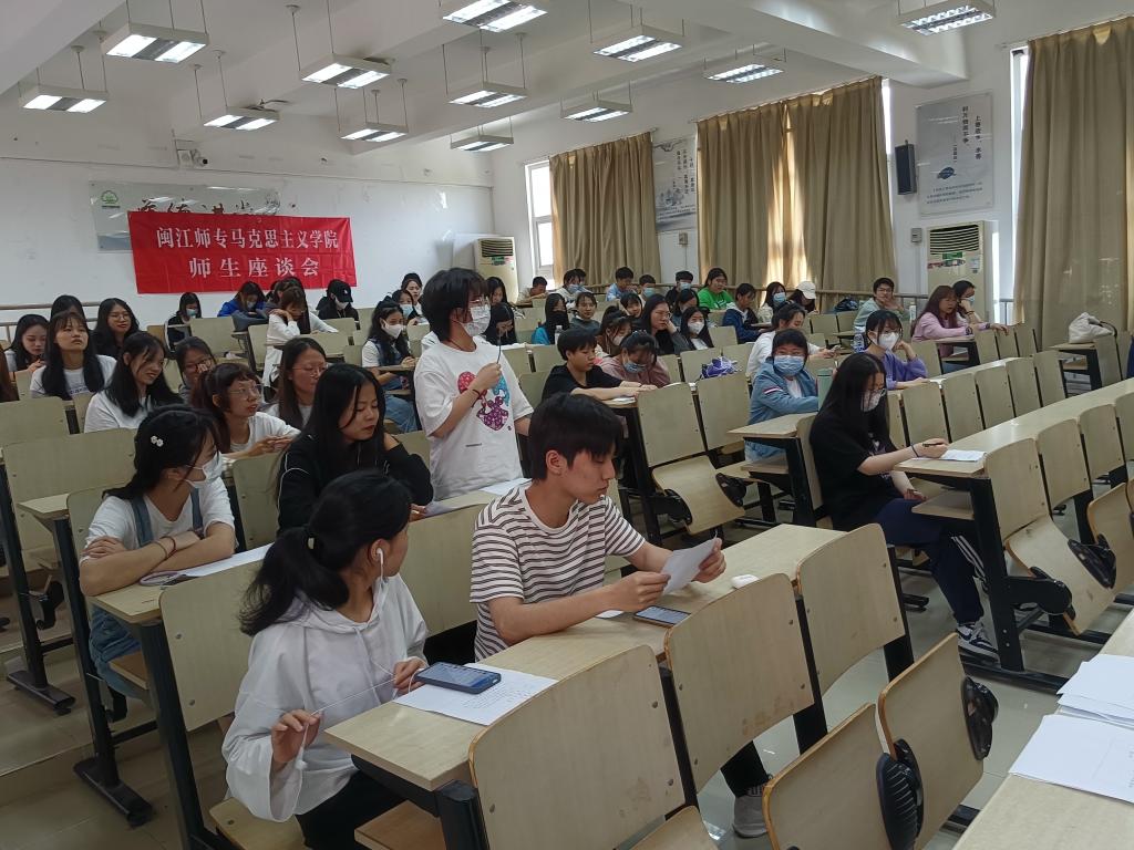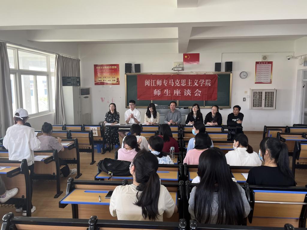 为扎实推进学院期中教学检查工作,倾听学生对思政课教学及管理的意见建议,5月16日、18日和20日,学院在旗山校区、仓山校区和海口校区分别举行思政课教学情况师生座谈会,院长洪书源,副院长林志香,教研室主任穆亮红、金雨青,教师代表邹萌、魏志达等出席,2021级、2020级和2018级五年专学生代表参加座谈会,座谈会由学院教学秘书谢细玲主持。