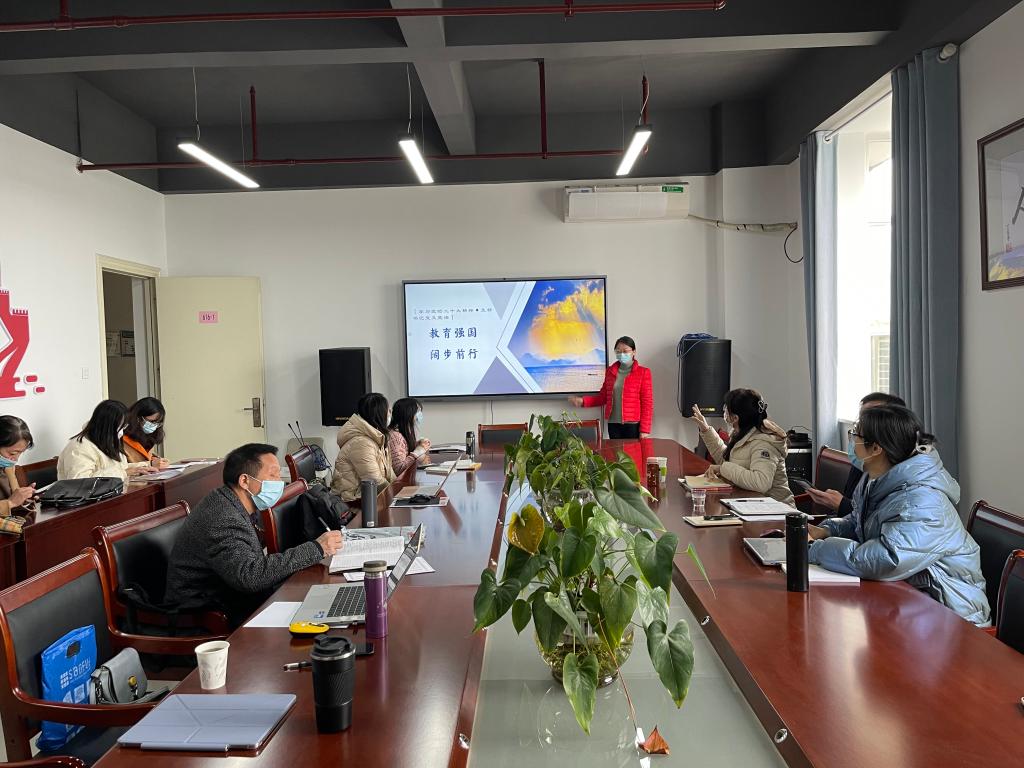 第二支部书记张兆延在党员活动室以“教育强国,阔步前行”为主题为第一支部全体党员讲授党课。张兆延首先介绍教育现代化的历史演变,接着通过大量数据和政策文件,重点阐述我国教育事业发展的重大成就。她强调,教育是国之大计、党之大计,作为思政课教师,我们肩负立德树人的重要使命,要坚持办好人民满意的教育,加快建设教育强国、科技强国、人才强国,坚持为党育人、为国育才,全面提高人才自主培养质量。