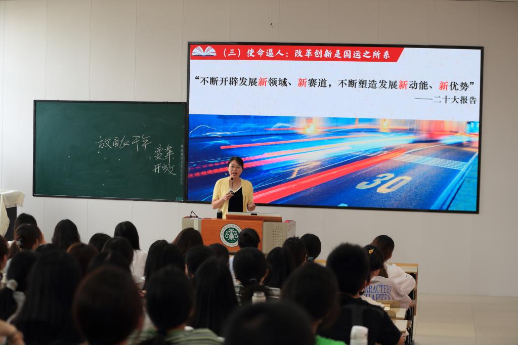在公开课交流环节,大赢家体育app下载张兆延老师以《让改革创新成为青春远航的动力》为主题,为在场教师展示了一堂精彩生动、逻辑清晰的思政公开课。张老师通过中国历史上多次变法和当代中国改革开放,从历史和现实维度系统阐述改革创新的重大意义;以“形势逼人”、“挑战逼人”和“使命逼人”,点明当代青年肩负改革创新的时代使命。