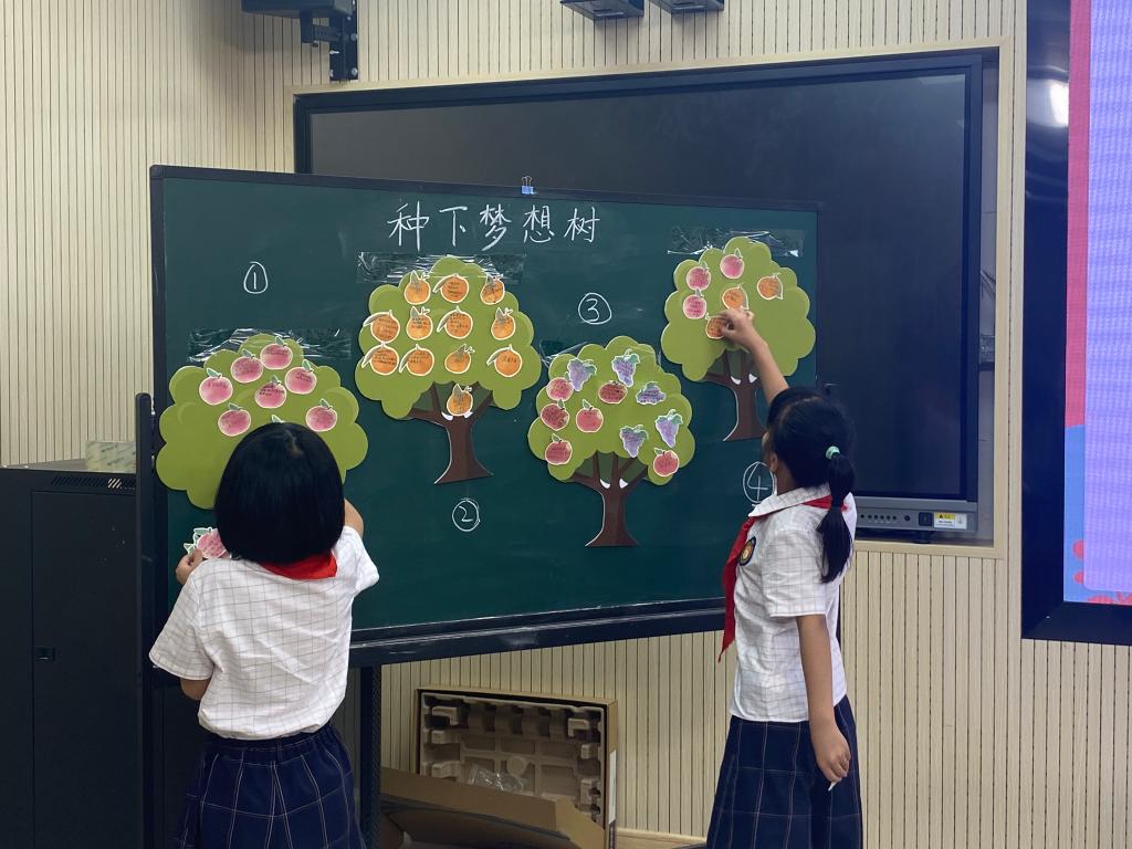 本次活动由小老师郑晴雨、曾玉惠、高圆圆、汤琳接续讲述,她们带领孩子们通过“绘下心中梦”、“致敬先辈梦”、“倾听稻田梦”、“种下梦想树”四个环节,思考国家梦,感悟民族梦,绘下个人梦想,在绘梦筑梦中为追梦圆梦立德立志。最后,金雨青老师对活动进行总结,鼓励各位同学好好学习、天天向上,时刻准备着为实现中华民族伟大复兴的中国梦贡献力量。