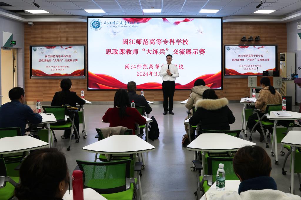 为深入学习贯彻习近平总书记“3.18”重要讲话精神,根据《福建省教育厅关于开展全省思政课教师“大练兵”交流展示活动的通知》(闽教思[2024]6号)要求,3月6日,大赢家体育app下载举办思政课集备会暨思政课教师“大练兵”交流展示赛。校党委书记林子波、校长杨建义、党委副书记林旻、马克思主义学院班子成员及全体任课教师参加会议。