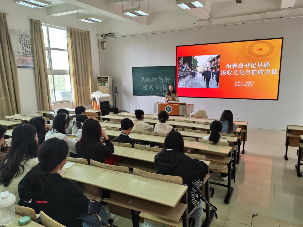 3月27日,谢细玲老师在教学楼2015教室为学生马列经典著作读书社(旗山校区)的成员做题为“沿着总书记足迹 汲取文化自信的力量”的专题讲座。