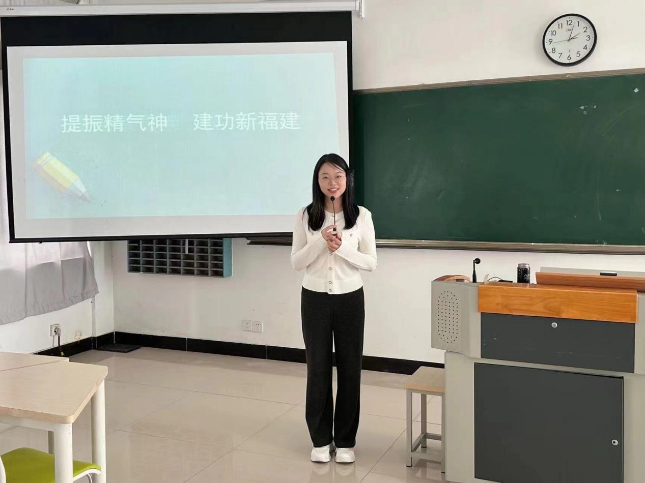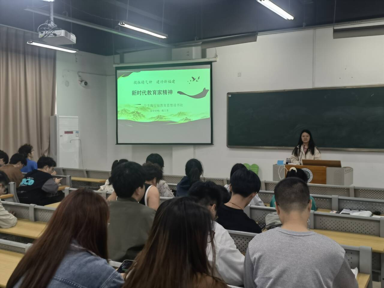 活动现场,程兰芳老师分享了对“提振精气神,建功新福建”的理解和感悟,并结合新时代教育家精神给读书社学生做了宣讲,引导学生结合师范专业形成适应新时代要求的思想观念、精神面貌、文明风尚,争做新时代有为青年。