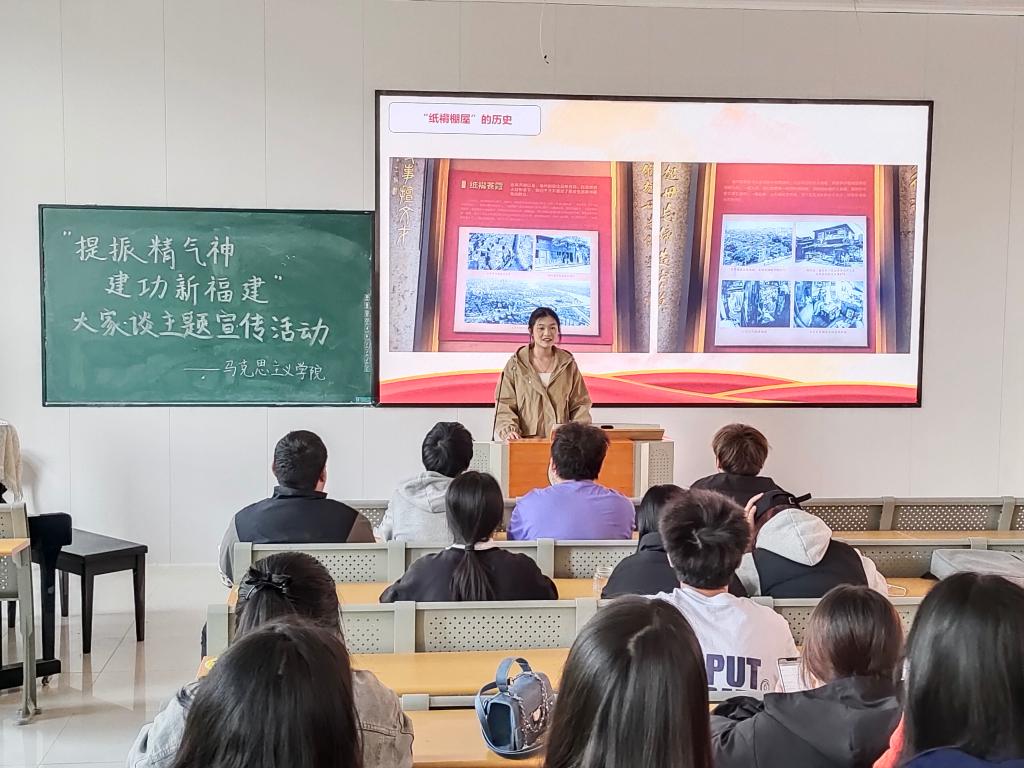 3月27日,学生星火宣讲团在教学楼2014教室开展“提振精气神 建功新福建”大家谈主题宣传暨“学思践悟二十大,星火青年勇当先”宣讲活动。