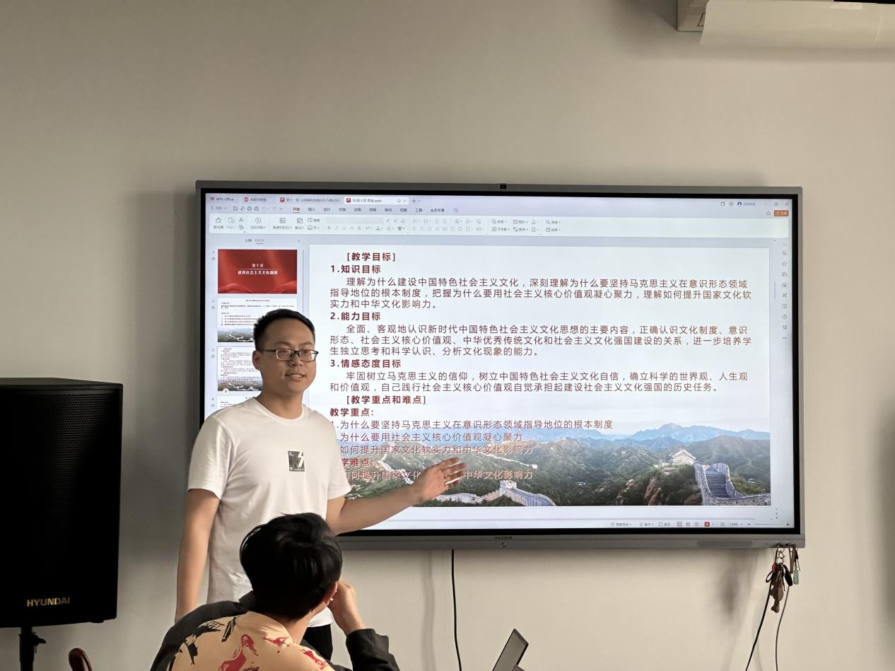 主讲教师卓龙锋围绕“为什么要坚持马克思主义在意识形态领域指导地位的根本制度?”“为什么要用社会主义核心价值观凝心聚力?”“如何提升国家文化软实力和中华文化影响力?”三个问题展开第十章《建设社会主义文化强国》授课思路的讲解。主讲教师曾玉婷围绕教材第十一章《以保障和改善民生为重点加强社会建设》中“民生为重点”“社会建设”等关键词,结合学情重点辨析第十一章重难点区别,引导学生进一步夯实学、思、用基础,做到知、信、行统一。