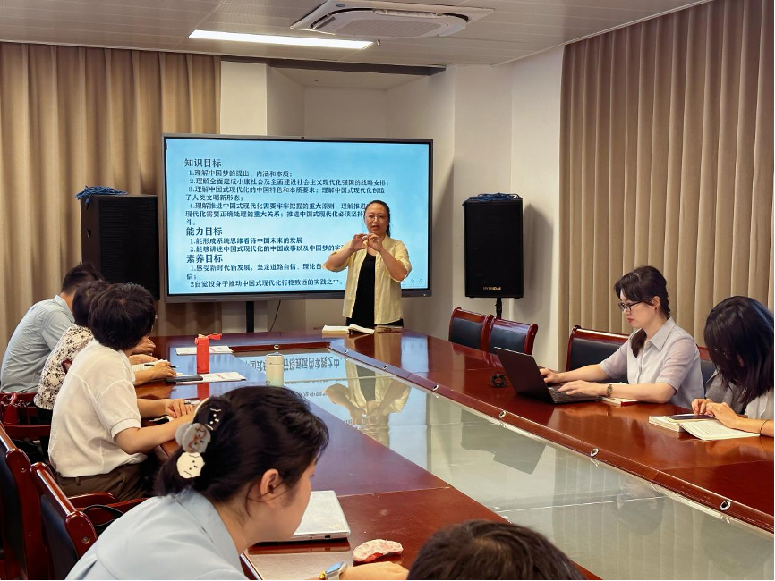 集备会上,王玮、林丽芳、练栅栅、黄倩倩、金雨青就第一讲“改革的实践续篇 现代化的时代新篇”分享教学思路,为攻破教学重难点提供丰富的教学资源。