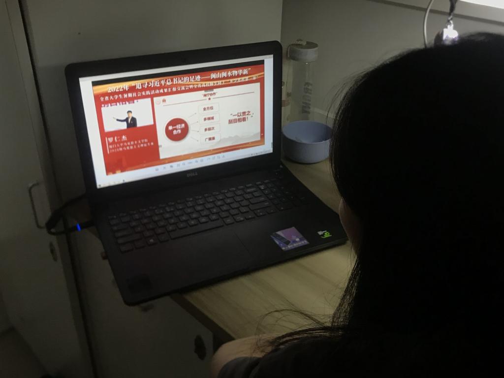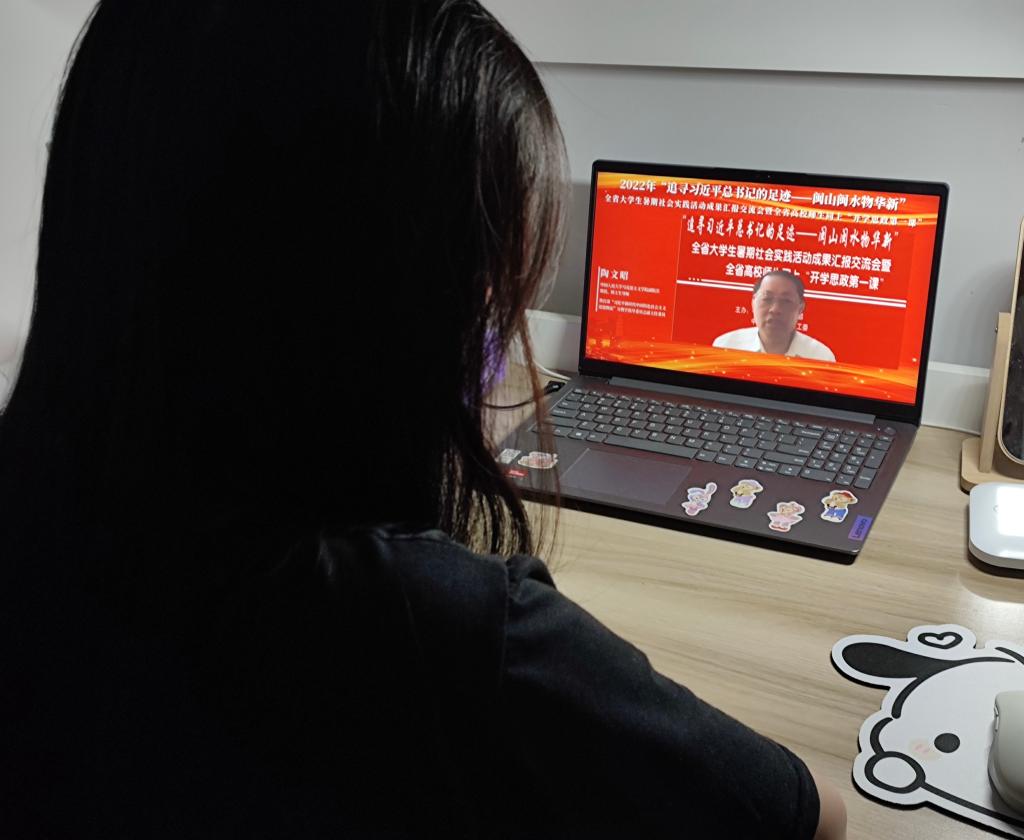 9月18日上午,我院组织全体读书社成员线上收看“追寻习近平总书记的足迹——闽山闽水物华新”全省大学生暑期社会实践活动成果汇报交流会暨全省高校师生同上“开学思政第一课”。本活动由福建省教育厅主办,生动展现习近平总书记在福建工作期间开创的宝贵财富。上好“开学思政第一课”后,同学们感触颇深,收获良多。